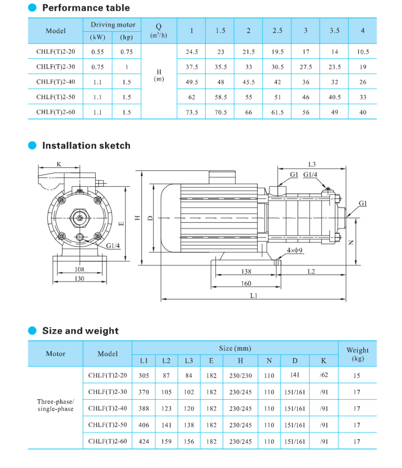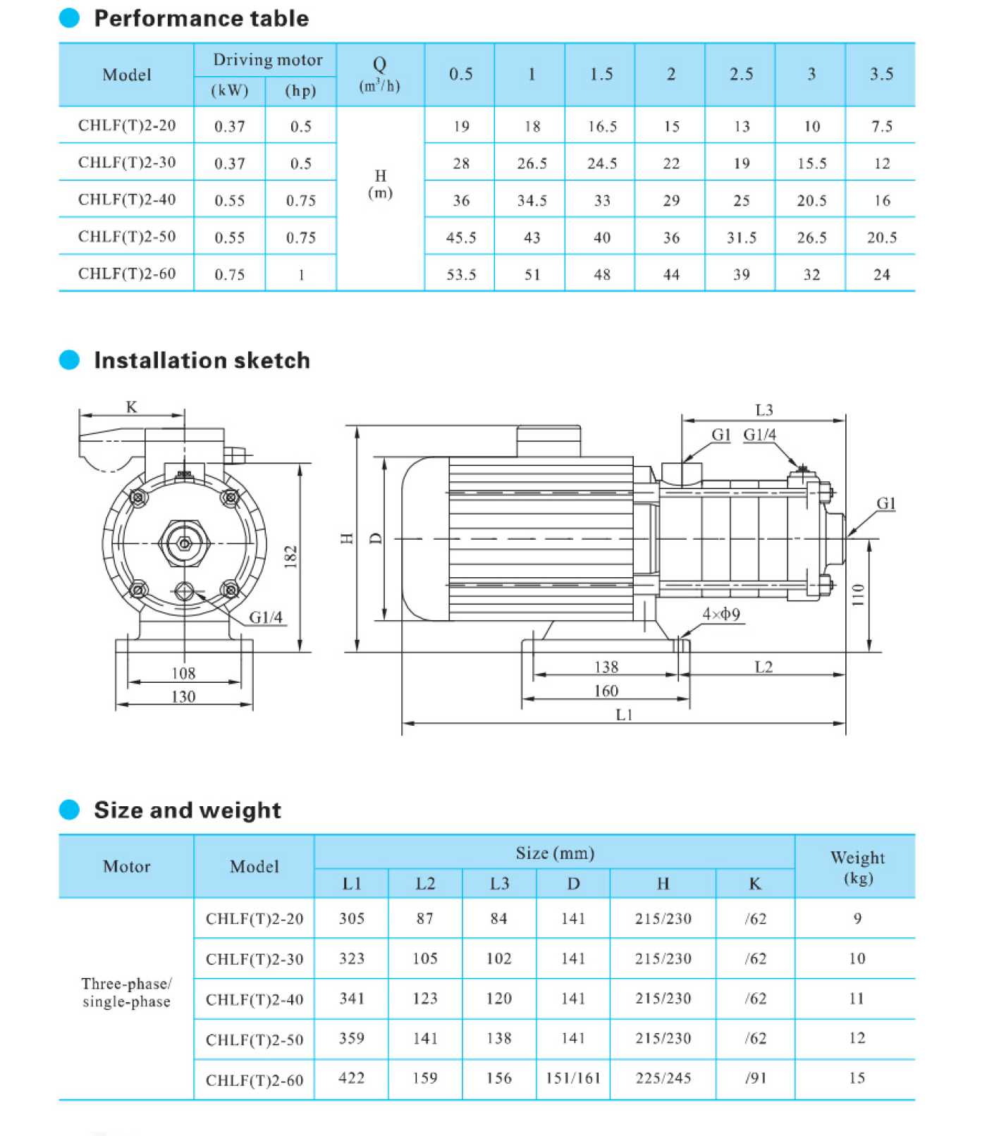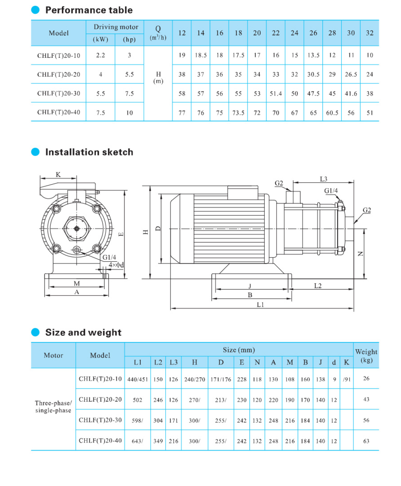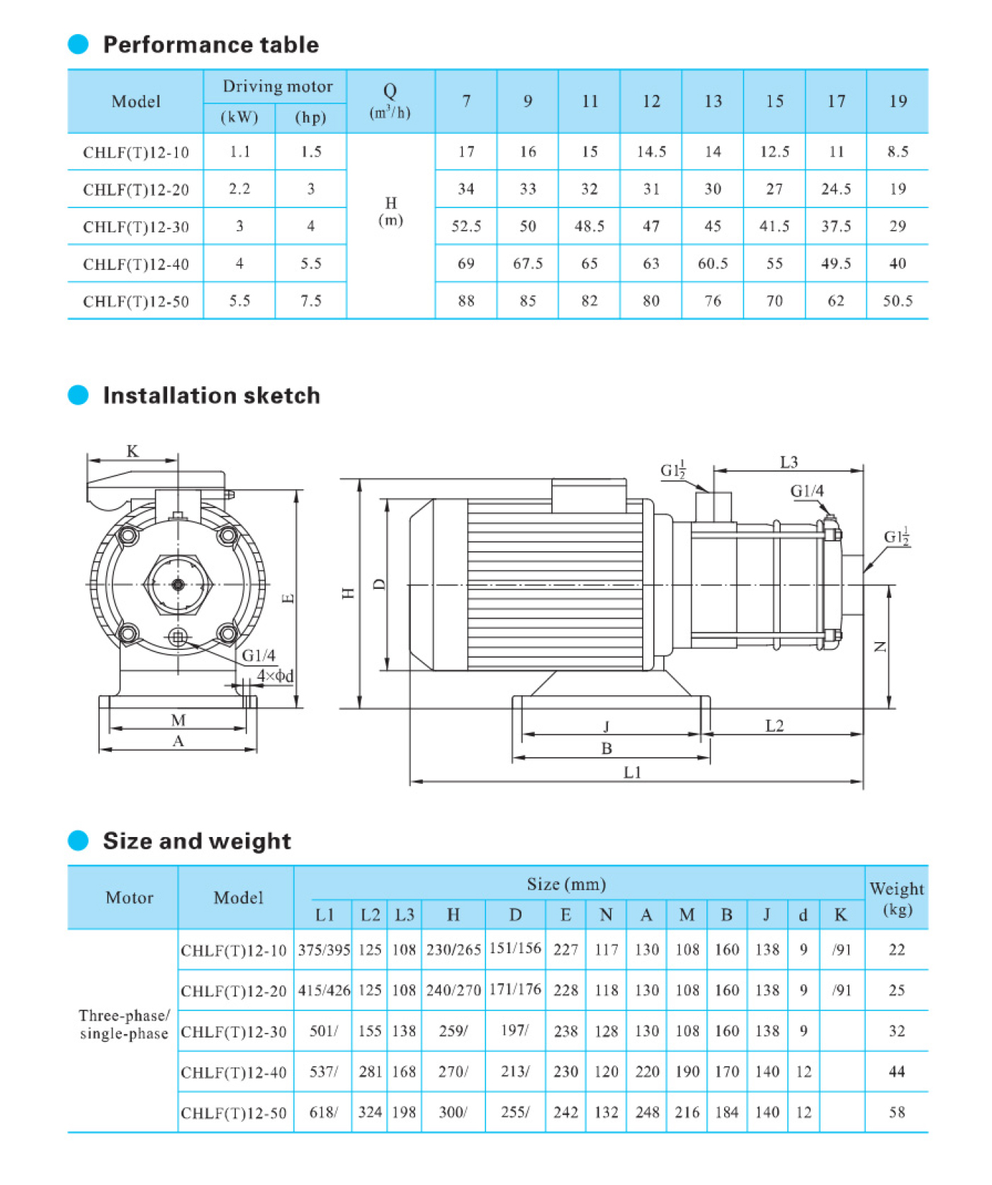La pompe centrifuge multicellulaire horizontale en acier inoxydable à haut rendement de la série CHLF est équipée d'un moteur à arbre allongé horizontal, d'une aspiration axiale et d'une décharge radiale.